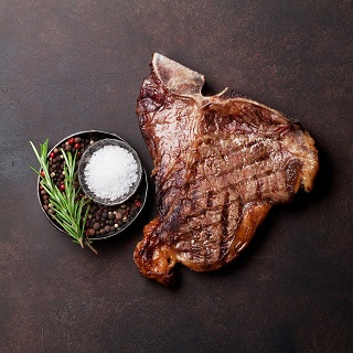 Pieza de lomo liso y filete con hueso, con forma de T, cuya proporción de Filete es menor o poco abundante en comparación al lomo liso. Pieza individual 700 gr. aprox. Precio por kilo.